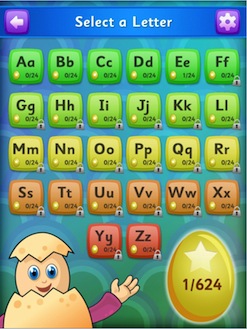 Available for the iPad and iPhone, Eggy Alphabet includes 4 main alphabet games that cover all upper and lower case letters of the alphabet – that’s a total of 208 activities – plus The Letter Game.